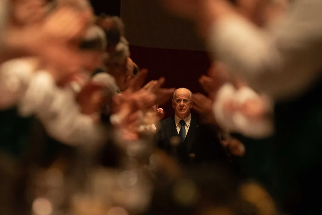 La Grazia se rapproche formellement davantage d’Il Divo que de Silvio et les autres. Sorrentino revient à ses films introspectifs du début de sa carrière, sans trop de flamboyance. Il y a bien ici et là quelques éclats qui rappelleront son style baroque. Mais le cinéaste ronge son frein et fait preuve d’une étonnante sobriété. Ce portrait d’un Président en bout de course, au bord du gouffre (la retraite) après une vie politique intense, séduit d’emblée dès la première image : sur les toits du Palais du Quirinal, un homme fume une cigarette la nuit tombée. Il est juste accompagné d’un garde du corps. Il contemple Rome et ses pensées s’envolent dans les volutes de fumée. Toni Servillo démontre en quelques plans son génie du jeu.