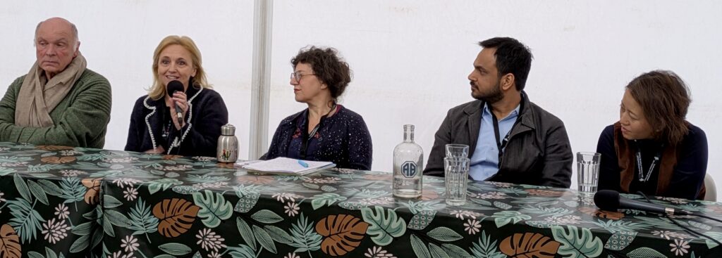 Une table ronde a réuni certains des artistes invités : Tribeny Rai, réalisatrice, et Kislay, scénariste, sont originaires du Sikkim. Ils ont fait le film The shape of Momo (inspiré par la vraie famille de Triberny Rai) ; Hermès Garanger est une réalisatrice qui a découvert la voie de lama boudhiste, elle a aussi été la narratrice, en plus de collaborer à la production, du documentaire L’Enfance d’un Maître – à propos de Kalou Rinpoché, considéré comme réincarnation d’un grand maître tibétain – de Bruno Vienne et Jeanne Mascolo de Filippis ; Joël Farges est réalisateur et producteur de Alexandra David-Neel: j’irai au pays des neiges (la première exploratrice française à découvrir Lhassa).